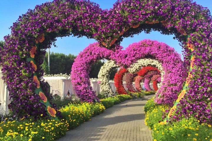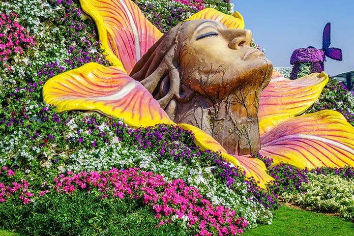 Dubai Miracle Garden: Wander through over 150 million blooming flowers in stunning displays, including the iconic Emirates A380 floral structure.
